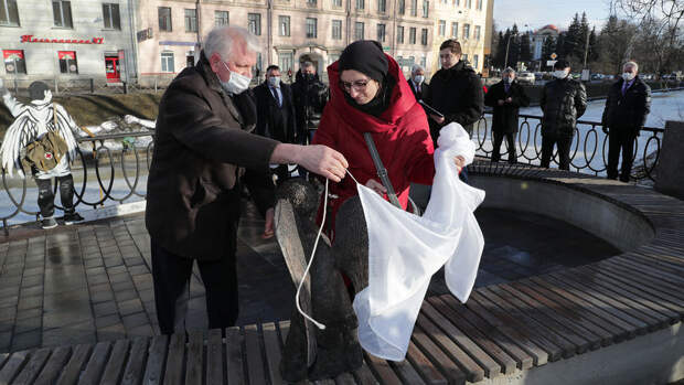 Памятник открыли вдова скульптора Мария Касьяненко и глава Петроградского района Иван Громов, в церемонии также участвовал губернатор Александр Беглов.