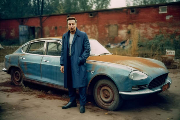 Нейросеть Midjourney сгенерировала главу Tesla Илона Маска, если бы именно он изобрел электрокар в СССР. Несколько изображений по такому запросу опубликовал Telegram-канал Pro AI.