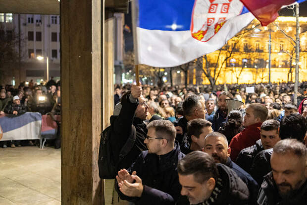 Более того, протестующие установили сцену между зданием избирательной комиссии и резиденцией президента страны Александра Вучича. В настоящее время на этом месте звучит громкая музыка.