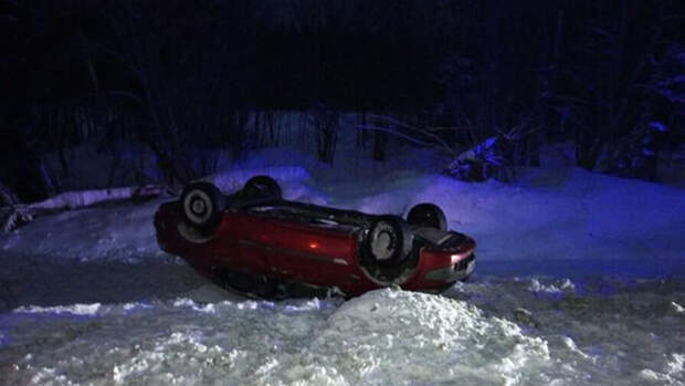 Инцидент произошел вечером 29 января на 43-м километре трассы "Ярославль - Рыбинск". Водитель машины "Рено Логан" не справился с управлением: машина съехала в кювет, а потом опрокинулась на крышу.