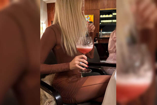 38-летняя Елена Перминова снялась с кольцом с бриллиантом на безымянном пальце. Модель в коричневом облегающем платье держала бокал с коктейлем.