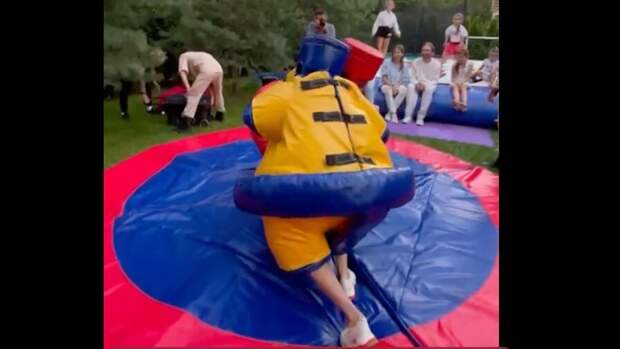 Ведущая программы "Мужское/Женское" Юлия Барановская в своем Telegram-канале она поделилась видеозаписями, как ввязалась в схватку в надувных костюмах сумоистов.
