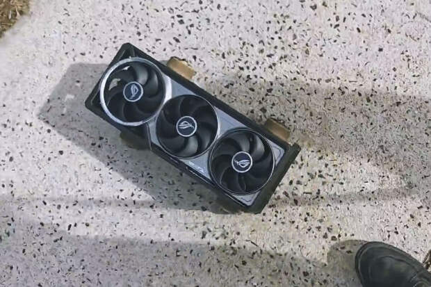 Энтузиаст использовал не видеокарту целиком, а его массивный охлаждающий модуль с тремя кулерами. В опубликованном ролике конструкция используется в качестве мини-скейта.