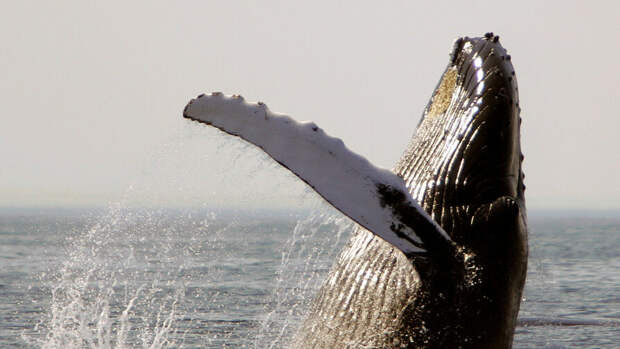 Кита рыбаки встретили рядом с островом Итуруп. Морское млекопитающее лежало на боку и как будто махало людям.
