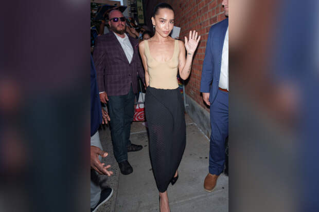 35-летняя Зои Кравиц появилась на премьере фильма "Подай знак" в Нью-Йорке. Актриса надела бежевый прозрачный топ без бюстгальтера и черную макси-юбку. Знаменитость дополнила образ бриллиантовыми серьгами и туфлями на каблуках.