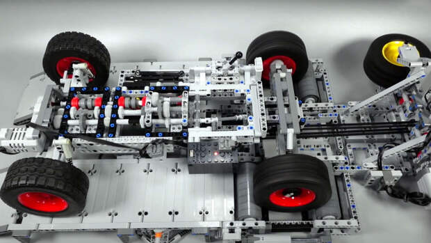 Помимо собственно трансмиссии, энтузиаст после нескольких попыток собрал из элементов Lego и исправно работающий механизм переключения скоростей.