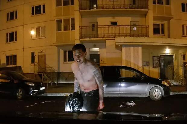 "Ночью 17.10 полуголый неадекват разбил как минимум 2 машины по адресу Фомушина, 8-1, а также набрасывался на людей. Скорей всего в мкр.