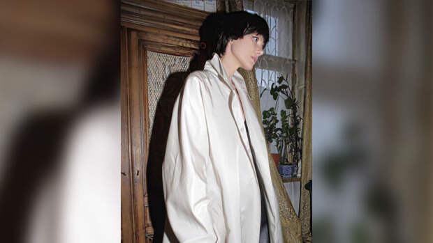 На опубликованной фотографии актриса и режиссерка позирует в светлом плаще в пол, темных кожаных штанах и с париком шатенки с короткими волосами.