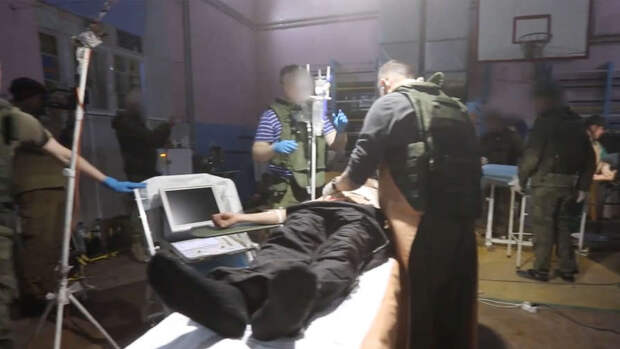 Министерство обороны РФ опубликовало видеоролик, на котором российские военнослужащие оказывают медицинскую помощь мирных жителям города Изюм в Харьковской области, попавшим под обстрел украинских реактивных систем залпового огня.