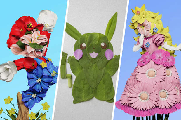Раку Иноуэ - японский художник, который приобрел популярность благодаря своим работам. В своем творчестве мужчина использует не краски, а листья и цветки, воссоздавая известных персонажей поп-культуры.