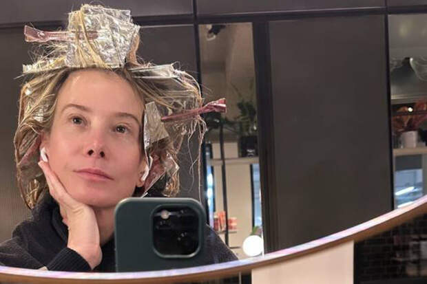На новой фотографии 50-летняя Юлия Высоцкая позировала в салоне красоты. Знаменитость была одета в темно-серое худи. Актриса и телеведущая сидела на покраске волос в беспроводных наушниках. Звезда отказалась от макияжа и поддержала тренд на естественность.