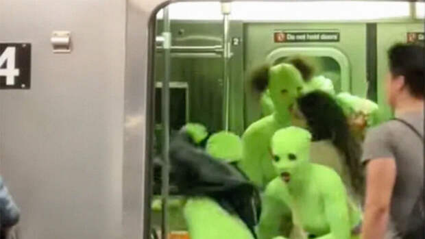 Шесть женщин, одетых в зеленое трико, напали на пассажиров в метро Нью-Йорка, пишет HuffPost.