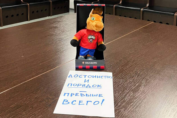 По окончании игры, которая прошла на "Открытии Банк Арене", игроки армейского клуба навели порядок в своей раздевалке и поставили на стол фигурку коня с небольшой запиской.
