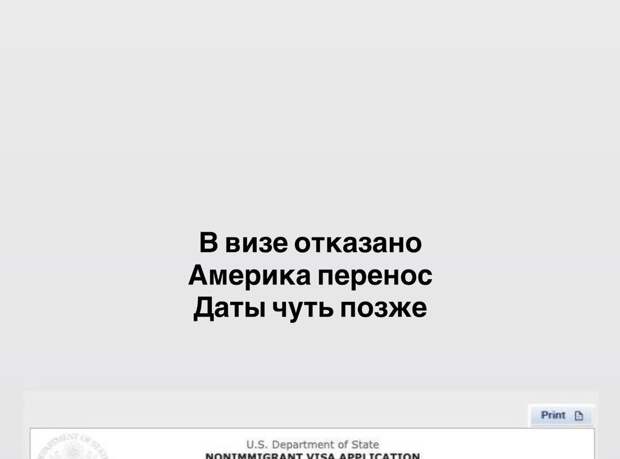 "В визе отказано. Америка перенос. Даты чуть позже", - написал исполнитель, сопроводив публикацию скриншотом решения американского консульства.