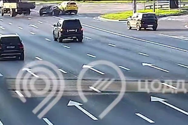 Уличная камера запечатлела инцидент на видео. На кадрах видно, как легковой автомобиль едет по оживленной дороге, в этот момент он резко поворачивает и врезается в грузовик, затем ― в машину, двигающуюся по соседней полосе.
