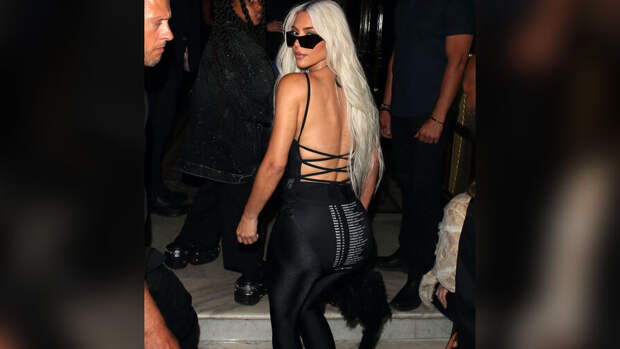 Ким Кардашьян в свет в боди-комбинезоне с открытой спиной и панталеггинсах Balenciaga во время Недели высокой моды в Париже. Об этом сообщает DailyMail.