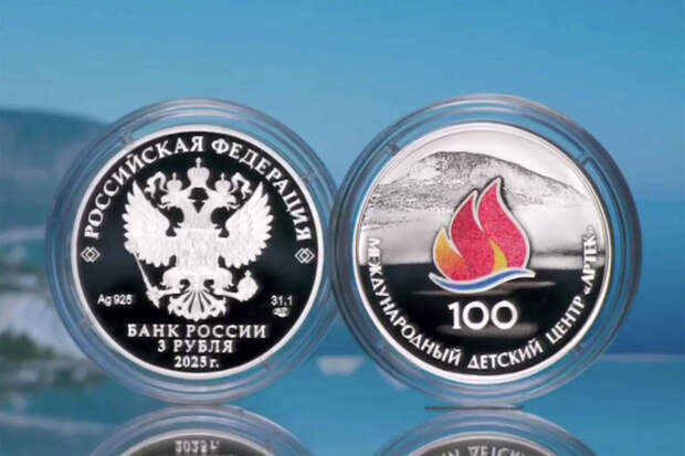 В России выпустили серебряную монету номиналом в три рубля к 100-летию Международного детского центра "Артек". Об этом сообщает Центробанк (ЦБ) в Telegram-канале.