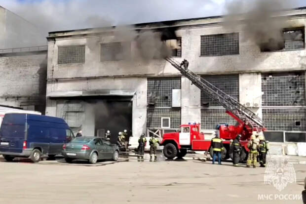 По данным ведомства, загорелось производственное здание. На месте происшествия работают 64 специалиста и 20 единиц техники. Спасатели вынесли из здания четыре пропановых и кислородный баллоны.