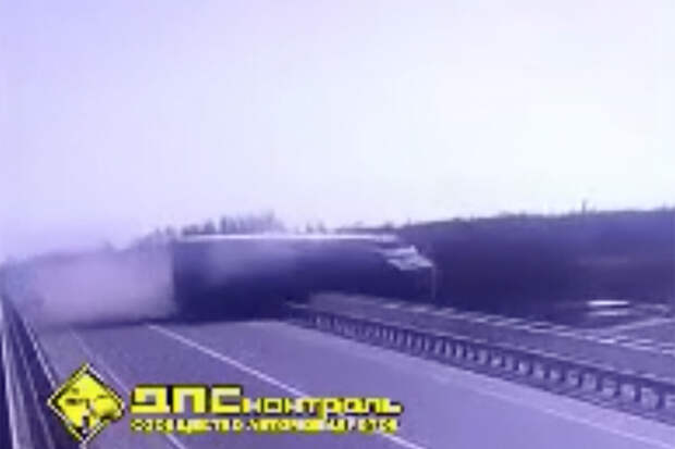 "Водители не выдержали боковой интервал, совершили столкновение, в результате чего грузовой фургон совершил опрокидывание с моста", рассказали изданию в краевом главке МВД.