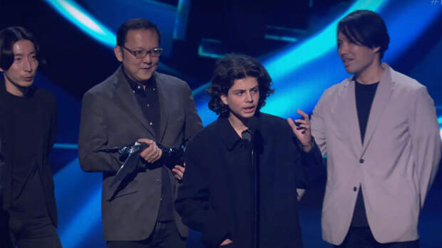 На трансляции с церемонии видно, как парень поднялся на сцену вместе с командой FromSoftware, получившей главный приз мероприятия за игру Elden Ring.