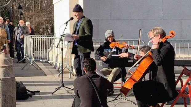 В спонтанном концерте под открытым небом к 71-летнему актеру присоединились виолончелист Ян Фоглер, скрипачка Мира Ванг и пианистка Ванесса Перес. Он исполнил несколько песен из мюзикла "Вестсайдская история", а также прочел стихи.