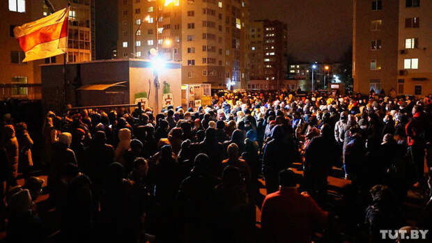 ", 'Трибунал!'.После минуты молчания минчане подняли вверх руки со знаком виктори.