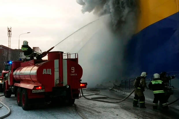 В министерстве добавили, что есть угроза распространения пожара на соседние здания, информации о пострадавших не поступало.