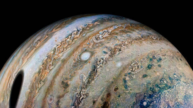 Космический зонд Juno сфотографировал на Юпитере крупную тень. Об этом сообщает NASA.