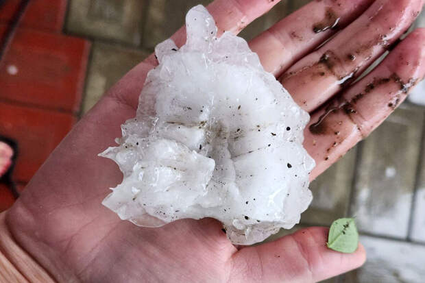 Крупный град обрушился на регион вечером 3 августа. По сообщениям очевидцев, градины по размеру напоминали яблоко или камень.