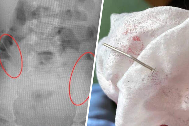 Родители обнаружили в горшке дочери металлические колечки и отвезли ее в больницу. Врачи сделали девочке рентген и обнаружили у нее в животе два гвоздя.