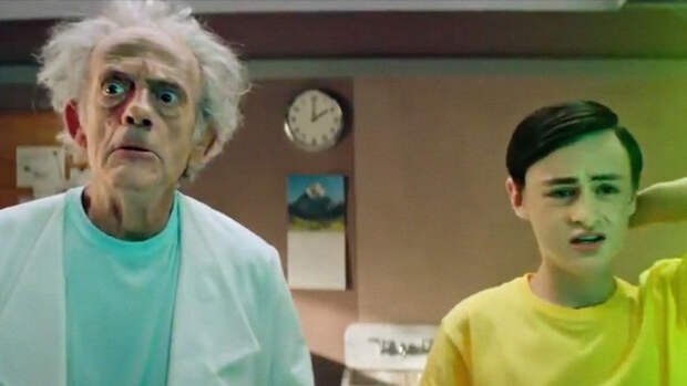 На кадрах показана лаборатория ученого, в которой с помощью портала появляются Рик Санчез и его внук Морти в исполнении Кристофера Ллойда и американского актера Джейдена Мартелла.