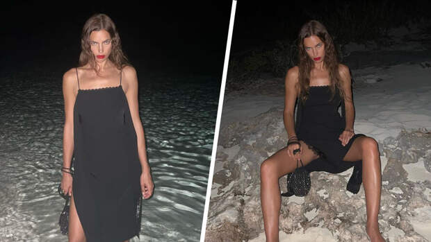 Ирина Шейк выложила серию фотографий из отпуска. На них она позирует в соблазнительном черном платье-комбинации на тонких бретелях и с разрезом до середины бедра. Образ дополнила небольшая сумка, украшенная бисером.