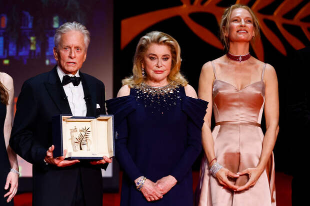 Награду Дугласу вручала актриса Ума Турман и ведущая церемонии Кьяра Мастрояни.