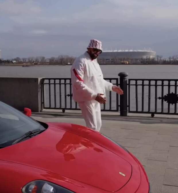 На размещенных в сети кадрах видно, как блогер Василенко в белом костюме садится в свою иномарку и проезжает по набережной, при этом водитель говорит, что Ferrari можно так ездить.