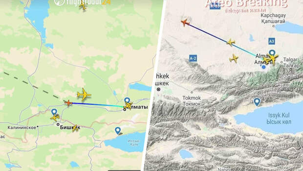 Предположительно, из Алма-Аты вылетели около 5-6 бизнес-джетов. Другой лайнер вылетел из Нур-Султана. На борту самолетов якобы находятся предприниматели.