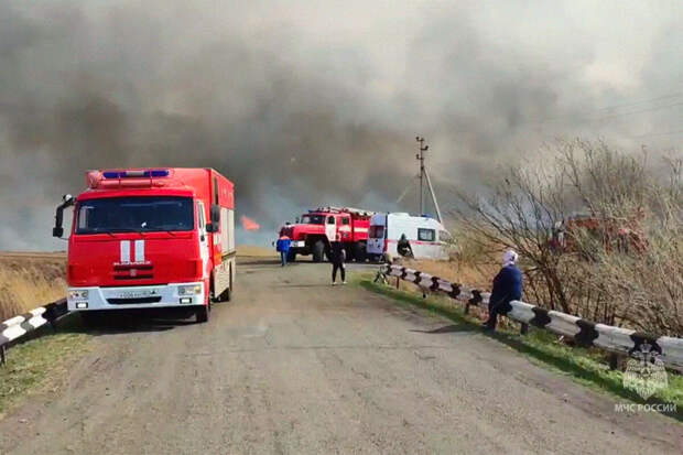 Как подчеркивается, огненный фронт возгорания в регионе достигает 3 км.