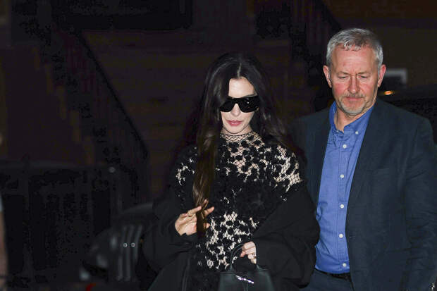 Папарацци подловили 43-летнюю Энн Хэтэуэй 14 апреля в Нью-Йорке. Актриса направлялась на вечеринку по случаю презентации фильма "Мать Мария", где сыграла главную роль. Артистка позировала перед фотографами в черном прозрачном платье-сетке, спущенном пальто и туфлях на каблуках.