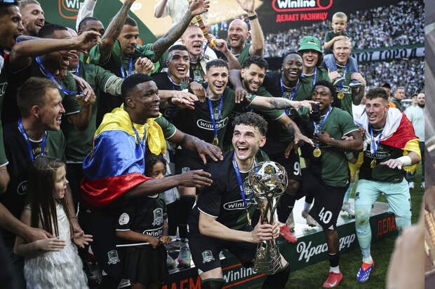 Президент Российской премьер-лиги (РПЛ) Александр Алаев вручил футболистам "Краснодара" кубок чемпионов российской Премьер-Лиги сезона-2024/25.