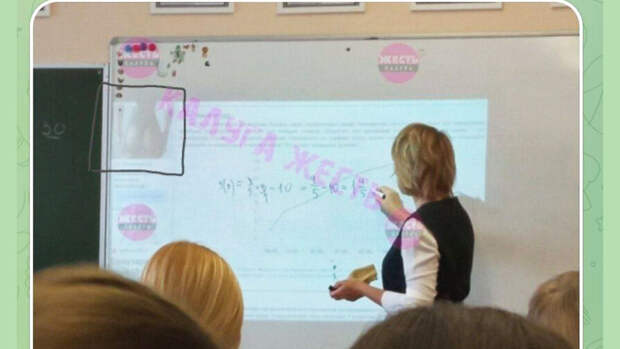 В одной из школ Калуга во время уроки математики на электронной доске отобразился неприличный баннер. Его сфотографировала ученица, а затем выложила снимок в соцсеть.
