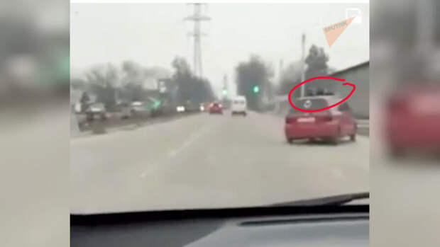 На видеозаписи инцидента видно, что автомобиль с человеком на крыше движется по оживленной улице на большой скорости. После того, как автор записи нажал на звуковой сигнал, хетчбэк Honda Fit съехал с дороги в арык и врезался в столб.