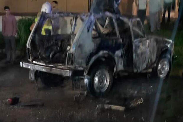 Инцидент произошел около одного из местных заведений общепита. Мужчина оставил машину на парковке и зашел в кафе. После этого средство передвижения взорвалось и загорелось.