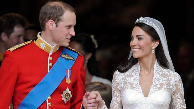 Герцог и герцогиня Кембриджские поженились в 2011 году в Вестминстерском аббатстве. На Кейт Миддлтон было платье Alexander McQueen с длинными рукавами, кружевным лифом ручной работы и длинным шлейфом.