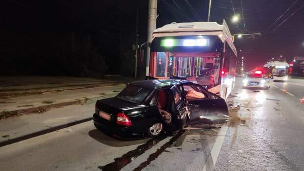 Рано утром в Волгограде 20-летний водитель "Лады Приоры" выехал на встречную полосу и совершил лобовое столкновение с троллейбусом, сообщается в паблике областного управления МВД во "ВКонтакте".