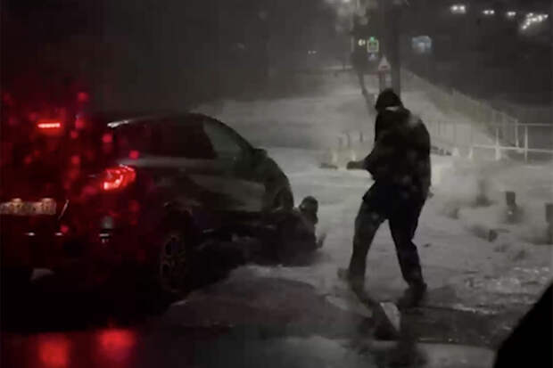 В селе Широкая Балка автомобилисты вытащили из-под машины девушку, которую сбило мощным ударом волны во время шторма. На кадрах ролика, который сняли очевидцы девушку сбивает с ног потоком воды и уносит прямо под колеса стоявших на светофоре авто.