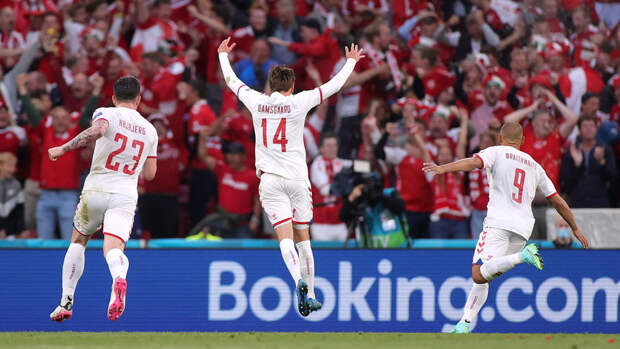 На данный момент счет в матче 1:2 в пользу сборной Дании.