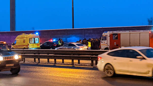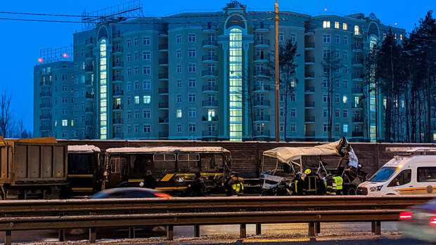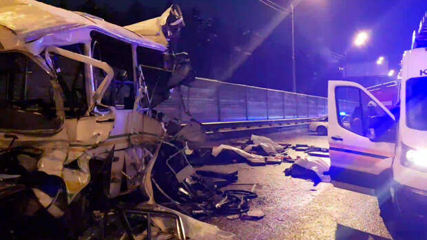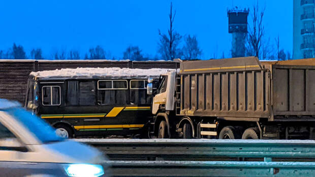По предварительным данным, колонна остановилась из-за неисправности ведущего автобуса, водитель попутного самосвала Scania не справился с управлением и столкнулся с одной из машин.