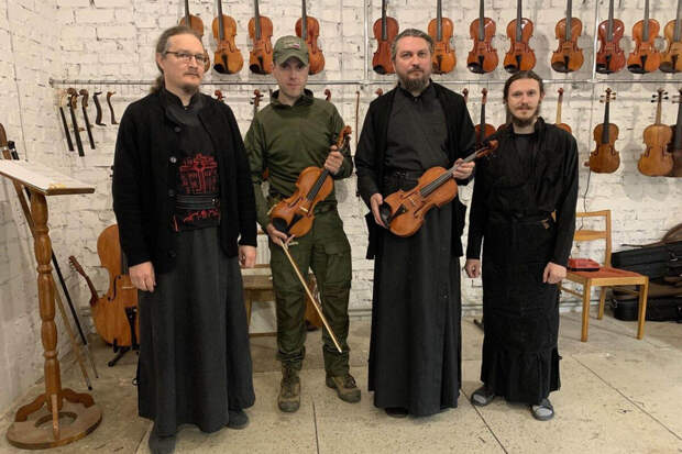 Новосибирский скрипач, советник губернатора по культуре Михаил Симонян и корреспонденты областного телеканала ОТС побывали в гостях у луганского священника, создающего скрипки.