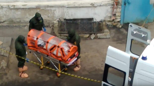 В соцсетях Воронежа опубликовали видео госпитализации одного из двух человек, попавших в больницу с подозрением на коронавирус из Китая. На кадрах специалисты в защитных костюмах и противогазах перемещают закрытые носилки в автомобиль "медицины катастроф".