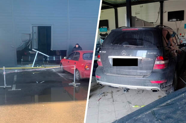 Инцидент произошел днем 16 марта в Старо-Паново на Поселковой улице. Автомобиль Mercedes-Benz ML въехал в здание станции техобслуживания.
