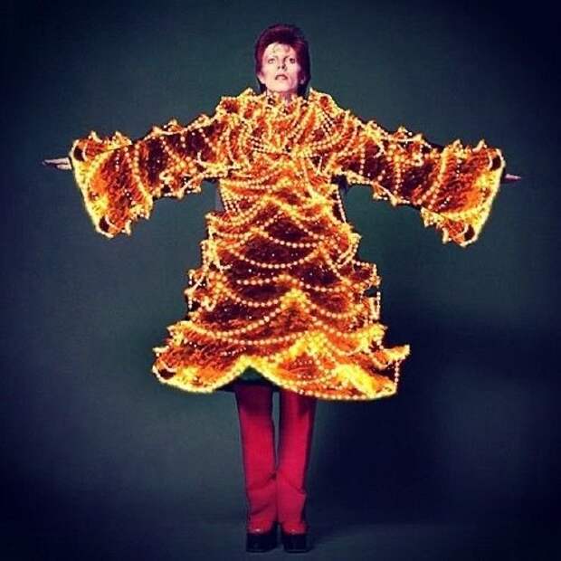 Как вспоминал Кансай Ямамото в 2016 в беседе с The Hollywood Reporter, Дэвид Боуи впервые проявил интерес к его одежде, когда обнаружил в продаже в Лондоне несколько вещей из его линии для женщин. "К счастью, у Дэвида было очень тонкое тело, и они подошли ему идеально – не нужно было даже подгонять", - рассказал модельер.